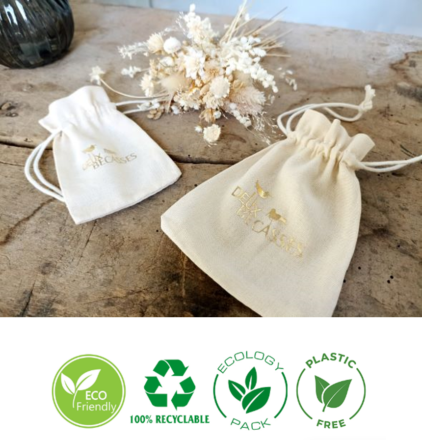 Un pochon Deux Bécasses en coton écologique vous est offert pour ranger votre bijou et en prendre soin.