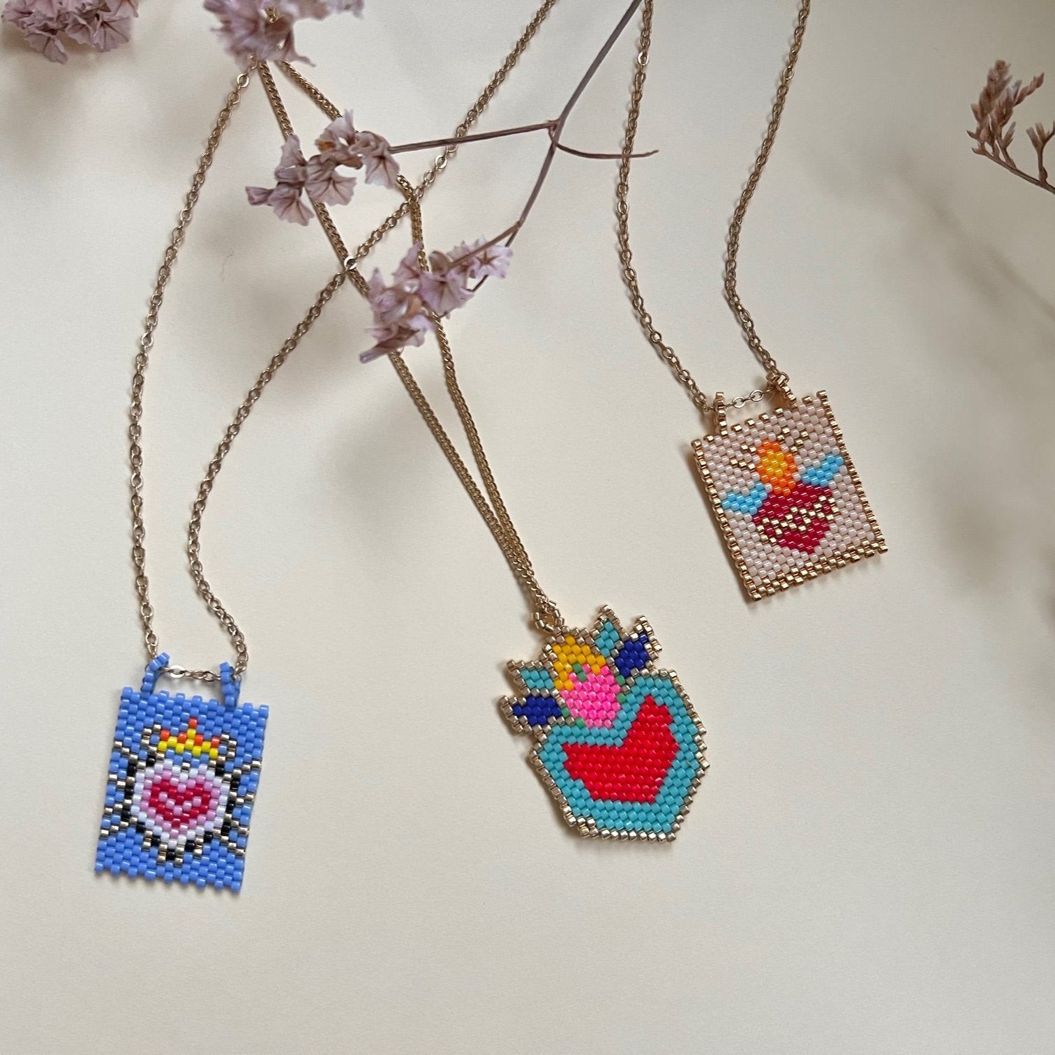 - Un joli pochon et une image religieuse de "Notre Dame du Bel Amour" accompagnent chaque bijou